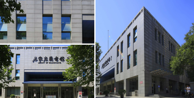 為滿足廣大市民讀書學習的強烈需求,石家莊圖書館對除書庫以外的建筑進行了拆除重建。本工程共 7 層,高 36 m,采用鋼筋混凝土框架結構,結構布置合理、安全、適用,中庭共享空間頂部支撐采光窗的螺栓球鋼網架輕巧美觀,采光效果好,為讀者提供了舒暢的活動空間。