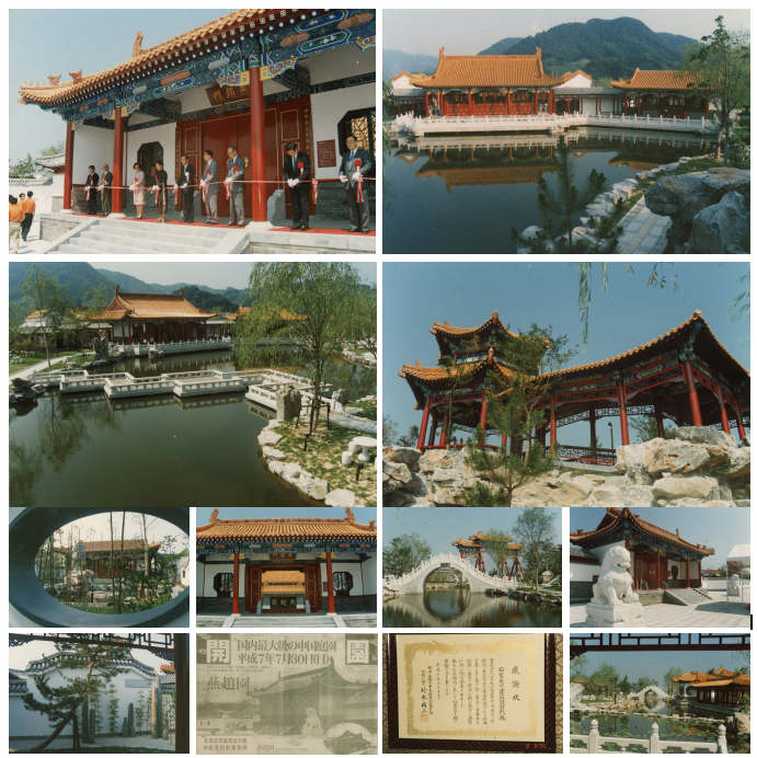 本工程為日本最大的中國古典皇家園林建筑,由石家莊市建筑設計院設計和總承包建設。本項目采用明清官式建筑大木作范式,斗栱梭柱,飛檐起翹,樓臺亭閣、軒館齋榭繞湖而建,曲廊回環(huán),大小建筑穿插滲透,融于山水之間,建筑構件采用中國古代營造法式,卯榫連接。